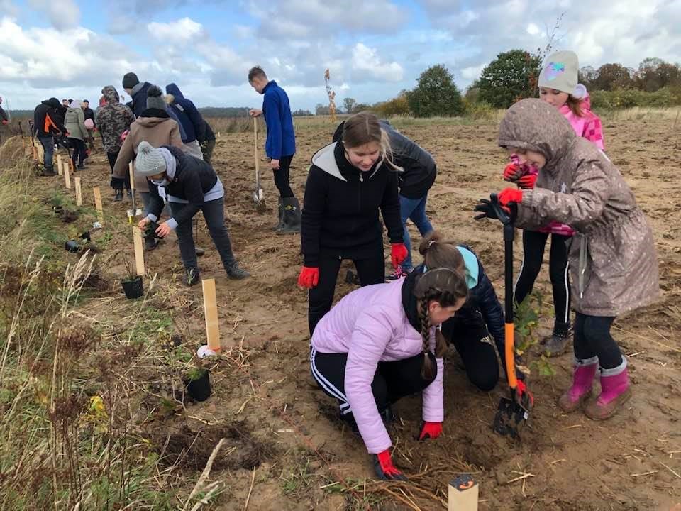 Am 23. Und 24. Oktober 2021 war es endlich so weit. Nach monatelanger Planung wurde in Kollaboration mit der polnischen Stiftung Fundacja Perspektywa der erste Tiny Forest Polens gepflanzt. Mehr als 50 Menschen aus Deutschland und Polen bepflanzten bei herrlichem Herbstwetter gemeinsam die 1500 Quadratmeter große Fläche in dem kleinen Dorf Rozwarowo, nahe der polnischen Ostsee.