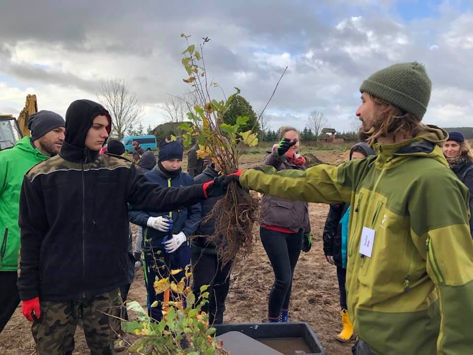 Von den ersten Planungsgesprächen bis zur Umsetzung des Projektes ging fast ein ganzes Jahr ins Land. Als Nikolaus und Agnieszka damals mit ihrem Anliegen auf uns zu kamen, den ersten Tiny Forest Polens zu pflanzen, waren wir sofort von ihrem Enthusiasmus und Engagement begeistern und freuten uns, die junge Stiftung bei ihrem Prozess unterstützen zu können. Dieser Tiny Forest sollte ein Leuchtturmprojekt werden, um vielen weiteren Menschen die Miyawaki Methode näher zu bringen und die Bewegung auch in Polen ins Rollen zu bringen. Deshalb entschieden wir uns gemeinsam, direkt mit einer verhältnismäßig großen Fläche zu starten, die in mehreren Etappen bepflanzt werden sollte, damit möglichst viele Menschen an dem Projekt teilhaben könnten. Zu den Pflanzaktionen wurde eine bunte Gruppe verschiedenster Menschen eingeladen. Es sollten deutsche wie auch polnische Bürger*innen mit dabei sein, um die länderübergreifende Relevanz von Naturschutz und Renaturierung zu symbolisieren und den kulturellen Austausch zu fördern. Außerdem wollten wir gerne, dass Menschen der verschiedenen Generationen gemeinsam pflanzen, denn der Erhalt unserer schönen Natur ist ein Belangen, das uns alle betrifft.