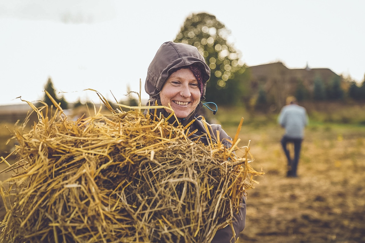 Stroh und Kompost werden in den Boden eingebracht