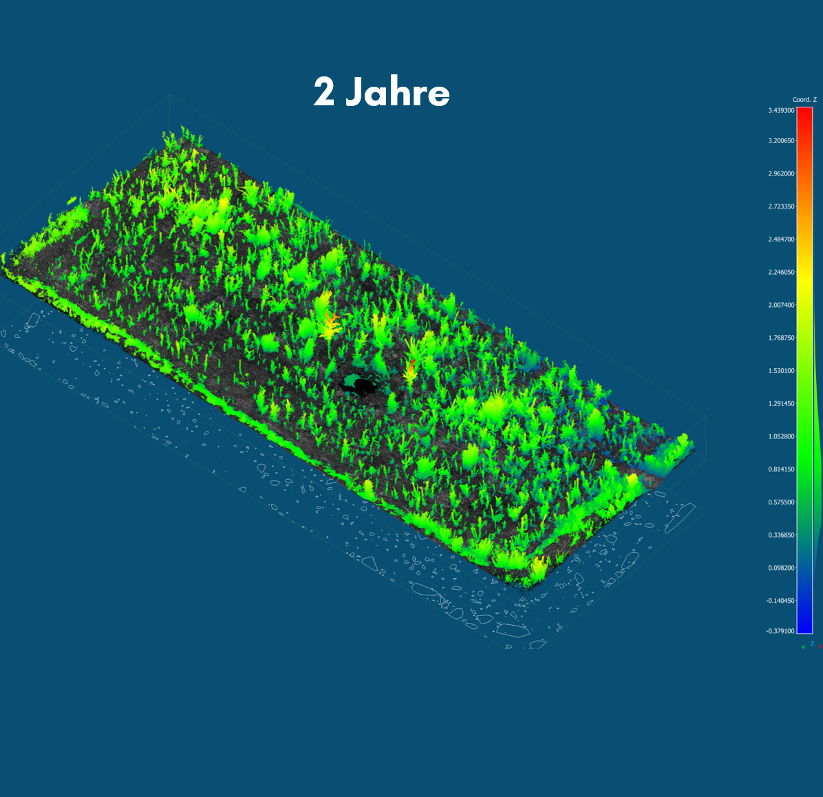 Die getesteten Methoden der Datenverarbeitung und Segmentierungsmessungen lieferten Informationen zur Pflanzanzahl, Gesamtbiomasse & Höhenverteilung. In Zukunft wird es möglich sein, auf diese Weise kontinuierlich Daten zu erheben und die Wachstumsdynamik von Tiny Forests präzise darzustellen. Wir freuen uns über die erfolgreiche Kooperation, die mindestens für die kommenden 10 Jahre geplant ist.