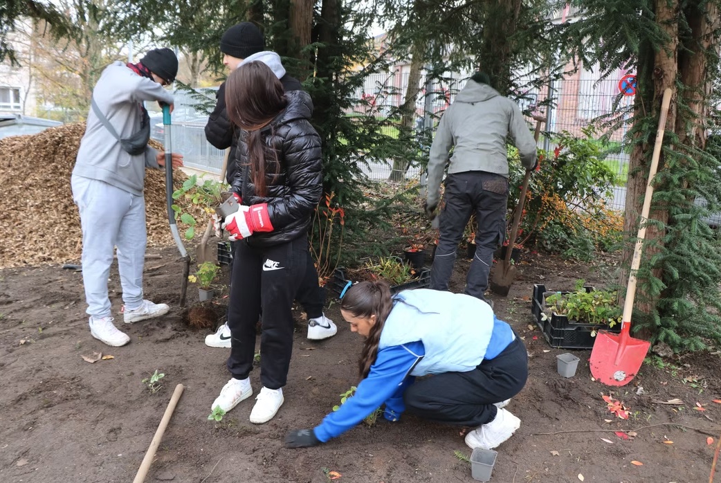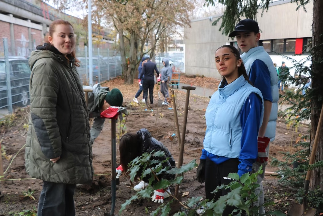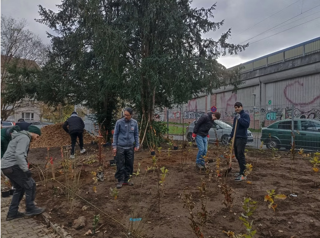 An der Ludwig-Geißle-Schule in Hanau wurde am 25.11. der nächste Tiny Forest gepflanzt. Auf 200 m² kamen insgesamt 600 Bäume, Sträucher und Bodendecker in die Erde. Im Schutze von drei großen Eiben und einer alten Linde wachsen hier nun die Bäume der nächsten Generation heran ❤️
